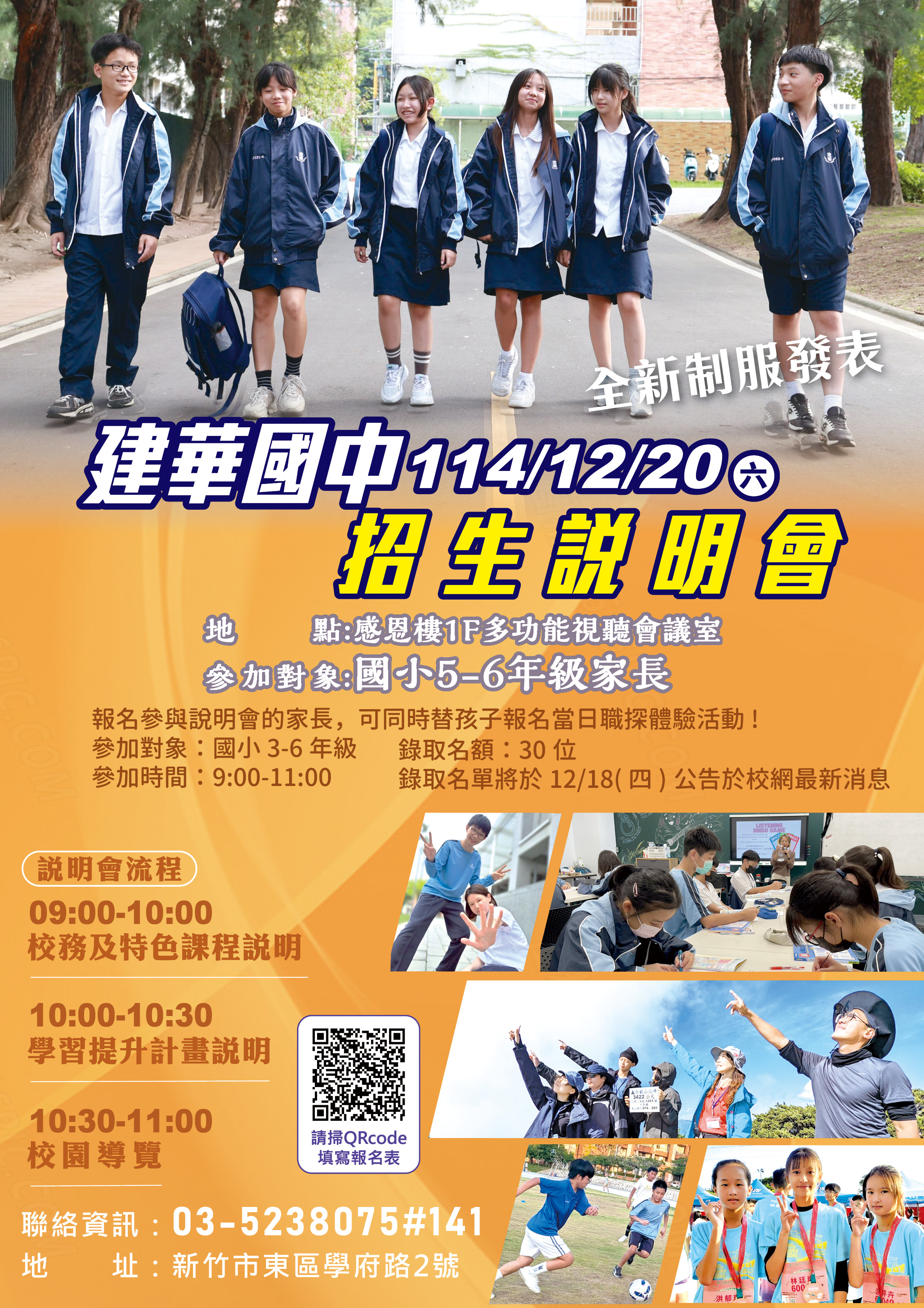 一、 招生說明會時間:114年12月20日(六)9:00-11:00