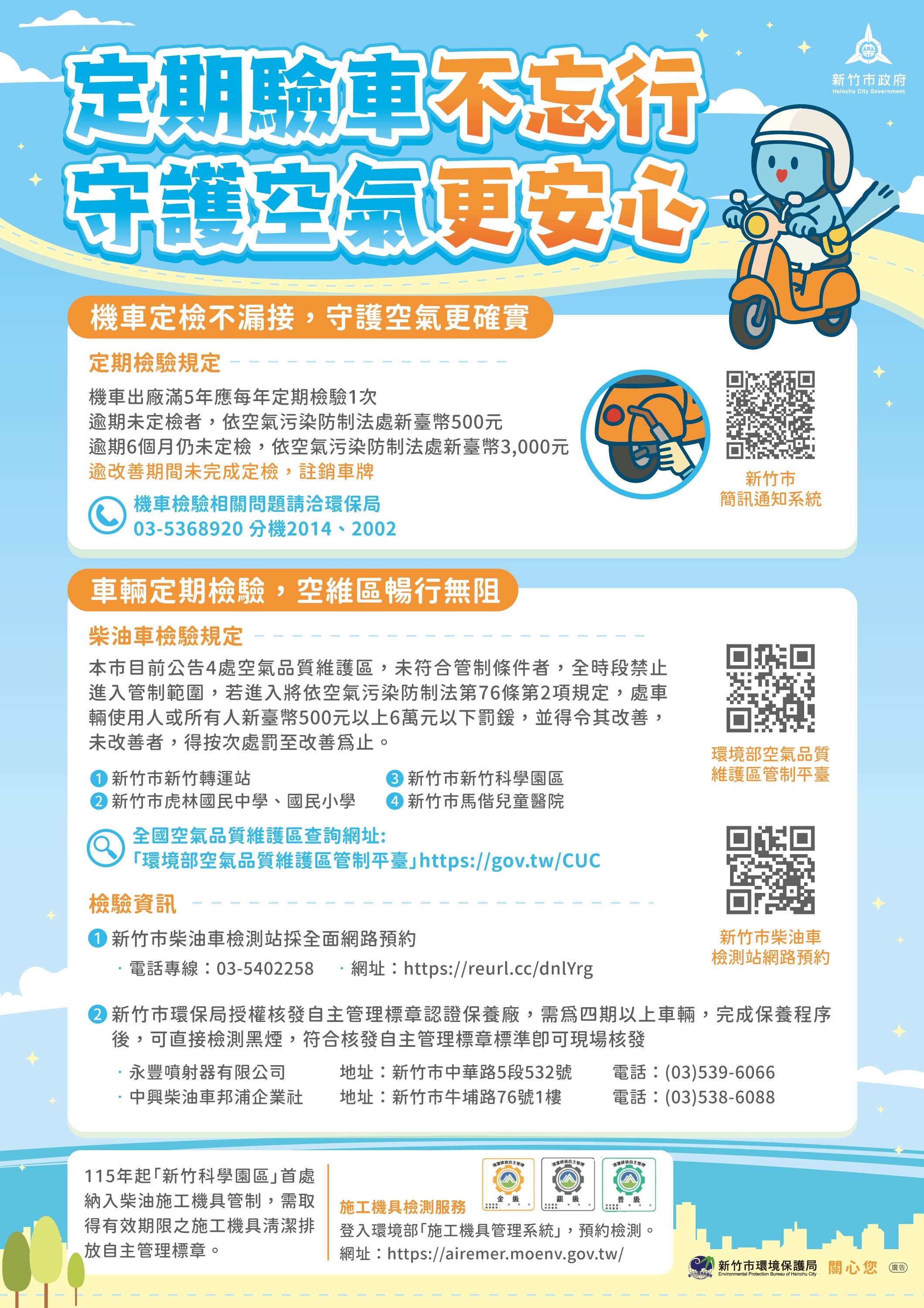 主旨:檢送「定期驗車不忘行,守護空氣更安心」宣導電子文宣1份(如附件),敬請轉知所屬單位、廠商、員工及學生家長並協助宣導,請查照。