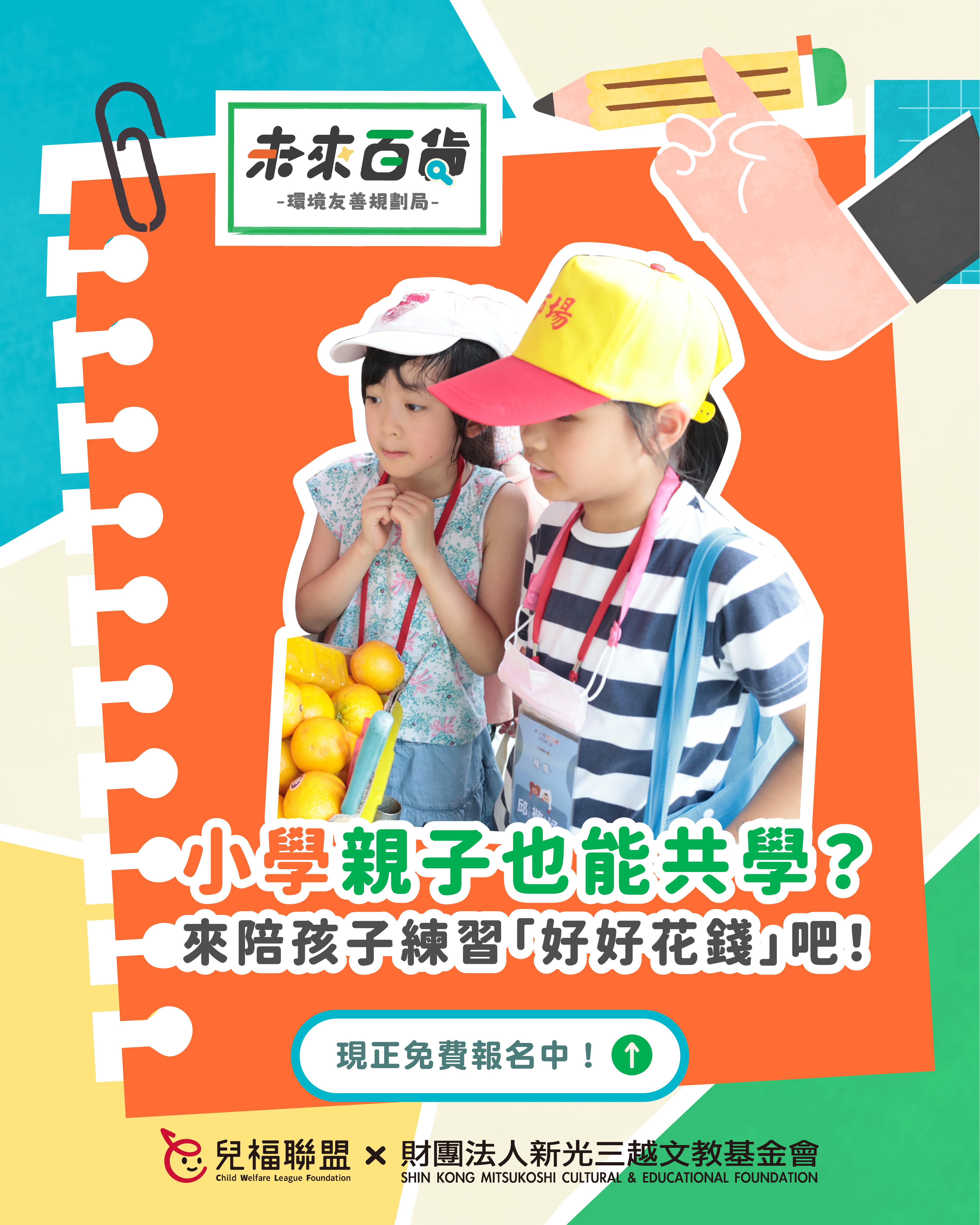 一、 為培養學童面對未來社會的獨立思考、溝通表達、永續素養等能力,並促進親子共學機會,本會辦理「新人類時光機:未來百貨-環境友善規劃局」系列課程,透過貼近生活、以遊戲和體驗為主的學習設計,引導孩子理解責任消費、環境保護等永續議題,練習整理觀點並付諸行動,以家庭、自身的生活為起點,為社會帶來良善的改變!