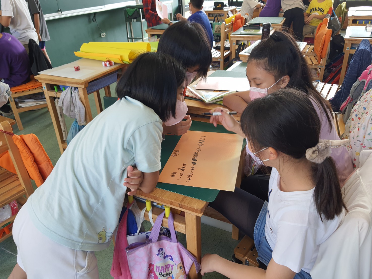 還好還好,老師心中的一顆大石頭終於放下。接下來各組分頭準備的過程中,老師開始各組巡視,關心各組進度、詢問還缺什麼用品、確認各組的準備也漸漸有了個雛型。課程進行至今,也可以確認此課程設計符合了孩子的生活經驗,孩子是願意學習、有興趣學習的;以孩子為中心出發的單元設計,也幫助教學者檢視課程設計的立意、及方向,並做為課程調整的參考。