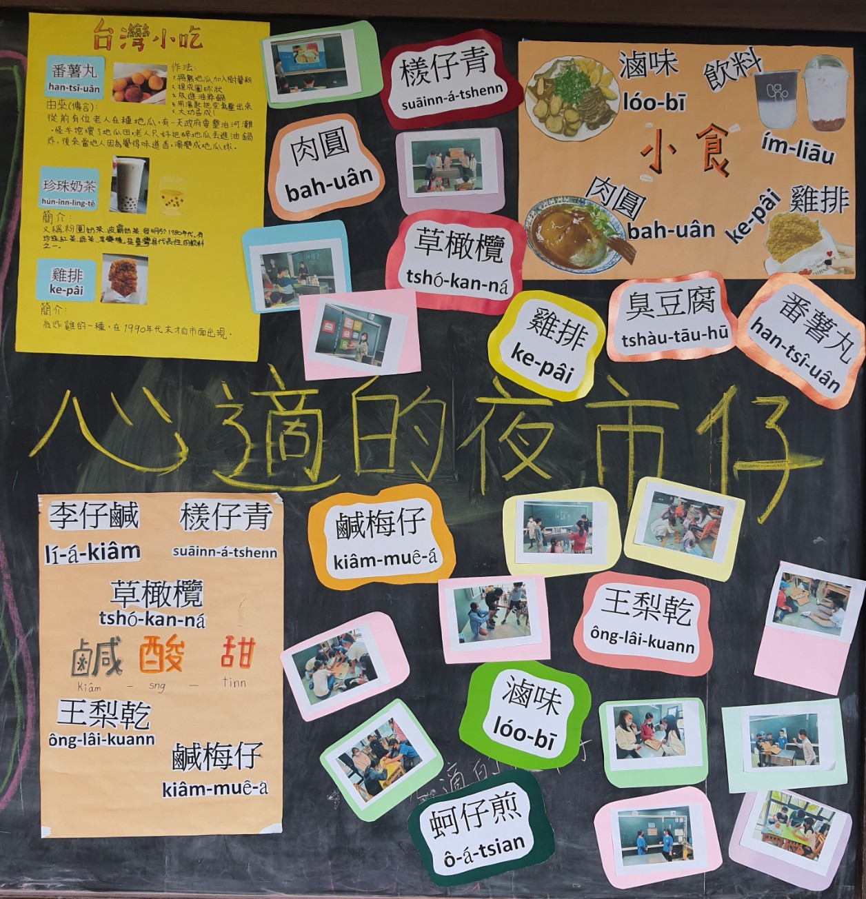 課程進行到多元展現夜市的文化特色,孩子們表現出高度興趣。積極地進行分組,開始尋思要擺什麼攤位?尤其玩遊戲的攤位,依舊和孩子的身心最為吻合,獲得大家的青睞。分組完成後,大約只剩餘10來分鐘就下課,但再來的一週間,每每經過任教閩南語課的班級,發現孩子們持續進行準備;下課時,孩子若缺什麼材料,也會主動到辦公室尋求協助。因此,選擇學生常接觸的夜市題材,組織教材內容,並針對文本的的專業術語,提供閩南語詞彙,如此多元的活動課程,孩子們是喜歡、有興趣、並能引起其共鳴的。