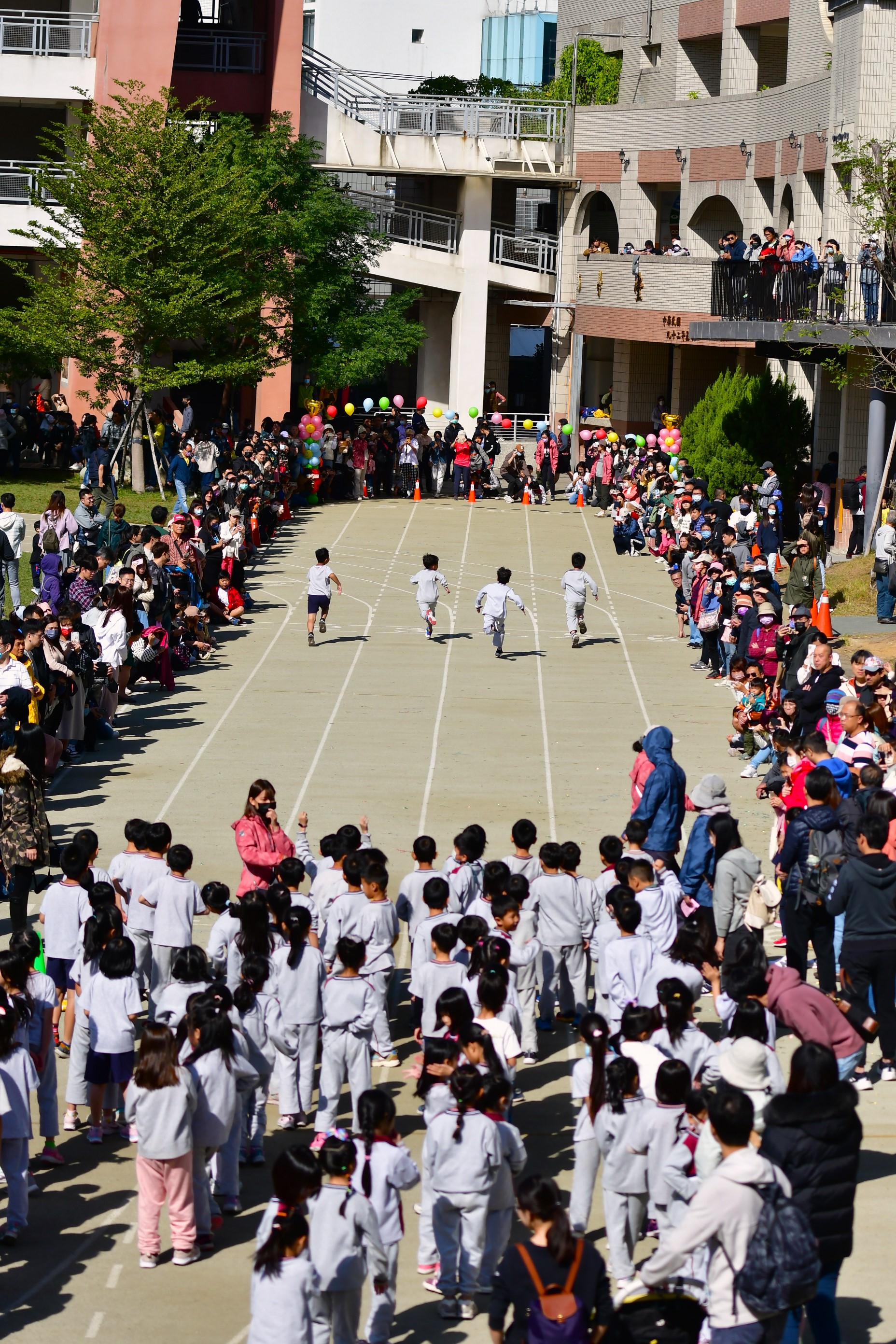 把視角拉高,看見的不僅僅是賣力參與運動會的孩子們,同時也看見了為數眾多,殷殷期盼能更近距離給孩子加油打氣,或是幫孩子留下美好記錄的家長們。