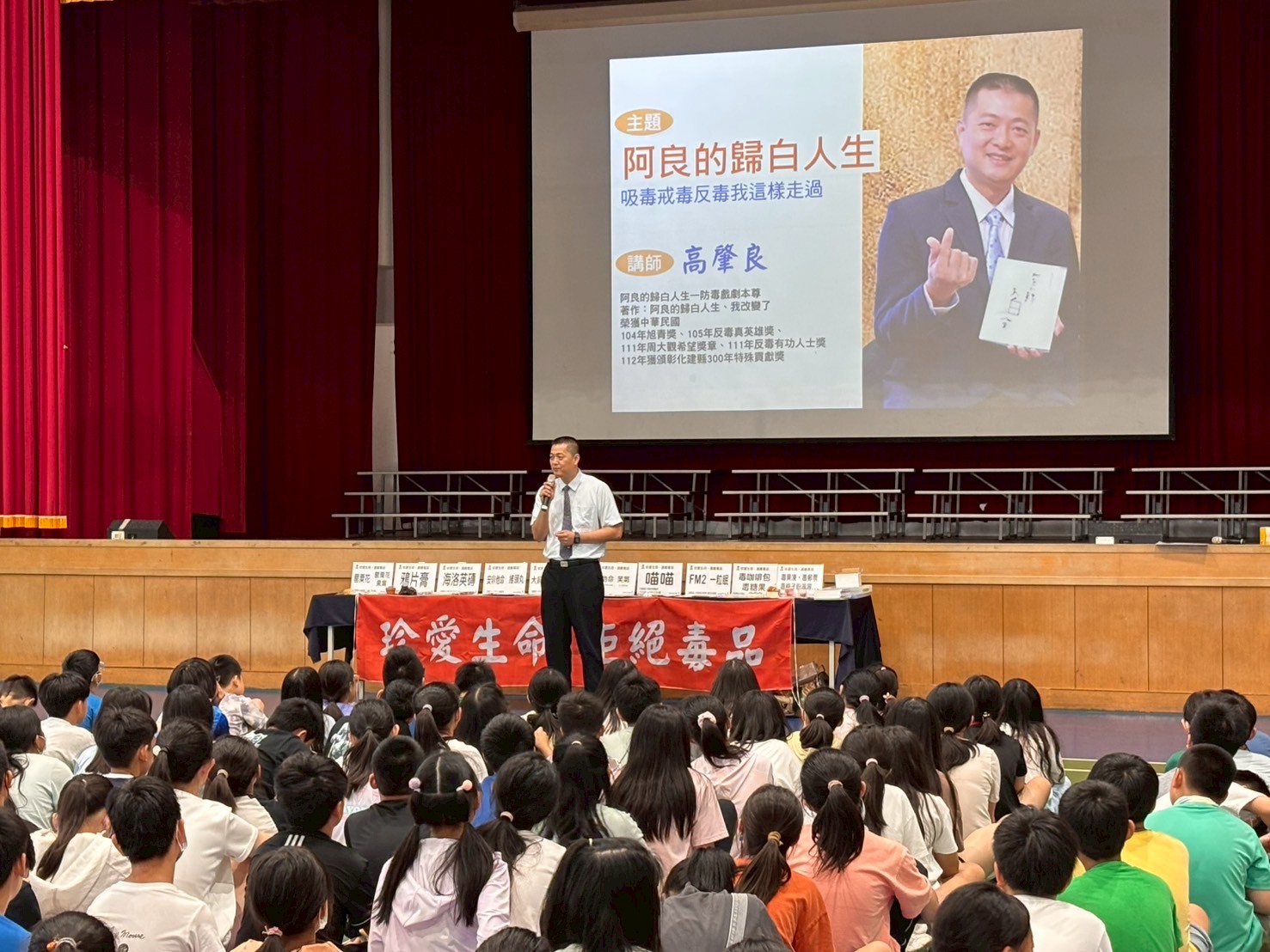 本次「防治藥物濫用」講座,特別聘請到高肇良講師,為六年級學生進行宣導。高講師以自身的生命經驗為例,真誠地分享過去因誤觸毒品而面臨的痛苦歷程,讓同學們深刻體會毒品對人生造成的傷害。