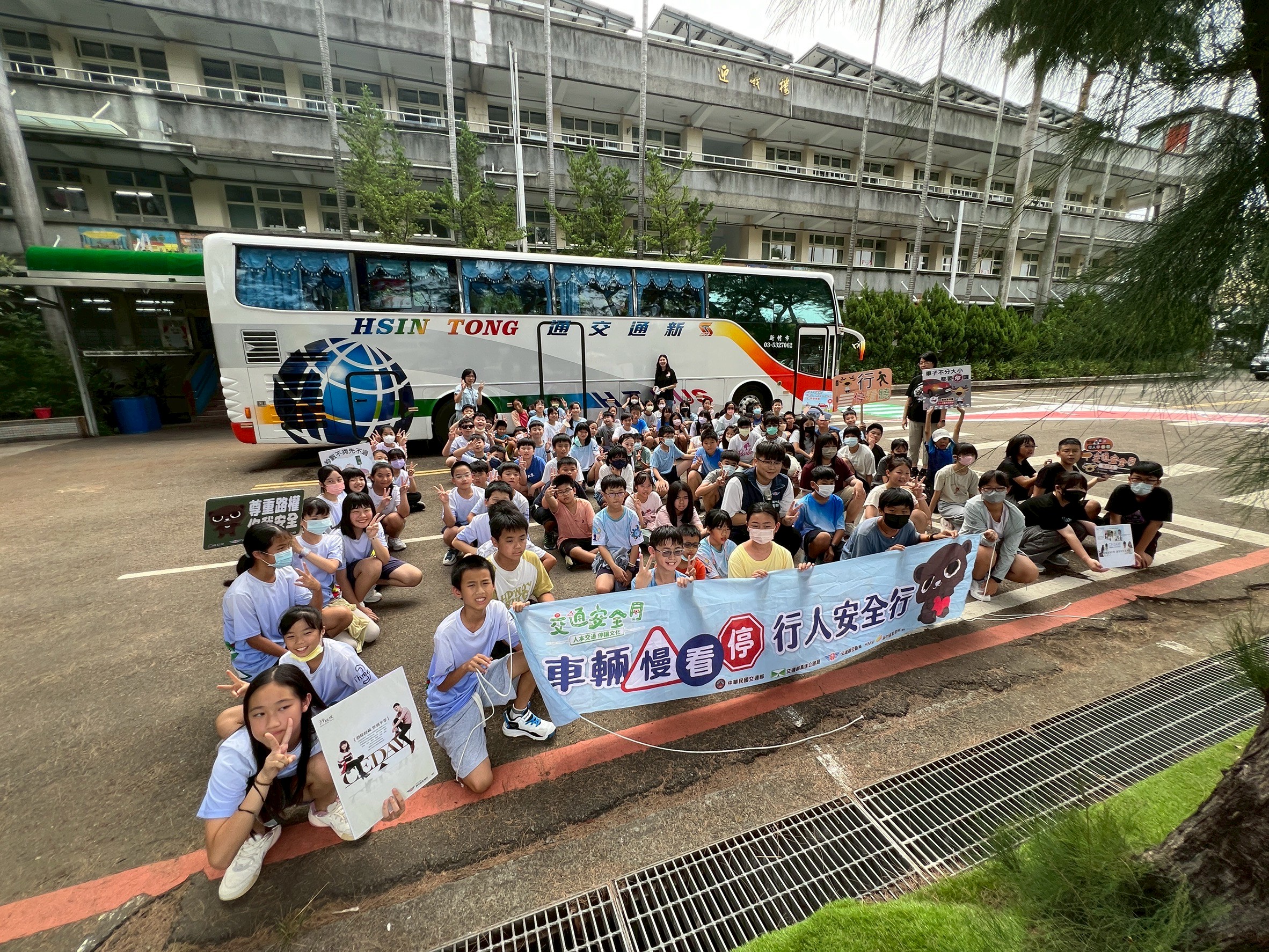 為提升學生的交通安全意識,本校為六年級學生舉辦道路安全教育講座,並聘請新竹市監理站的專業講師親臨指導。講座中,學生們透過互動式體驗,深入了解大客車的視野死角與A柱盲點,親身感受駕駛視線的限制。
