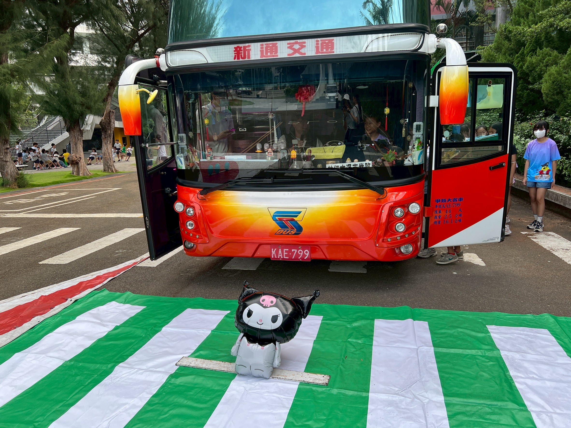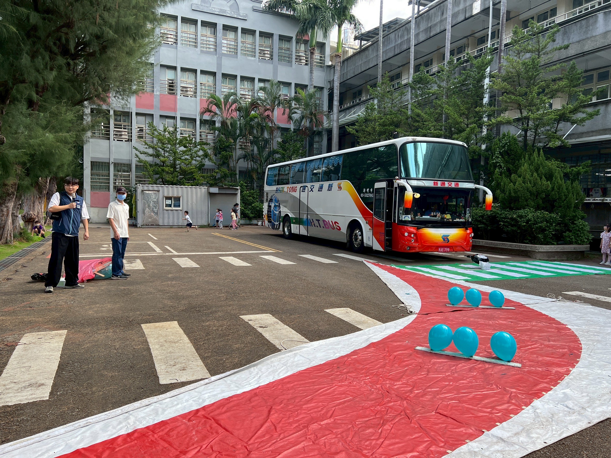 此外,講師還安排了實際車輛行駛示範,利用氣球和玩偶模擬車輛內輪差及可能造成的危險,讓學生直觀理解行車安全的重要性。透過理論與實際操作相結合的方式,學生們不僅學習到道路安全知識,也增強了自我保護的警覺性。