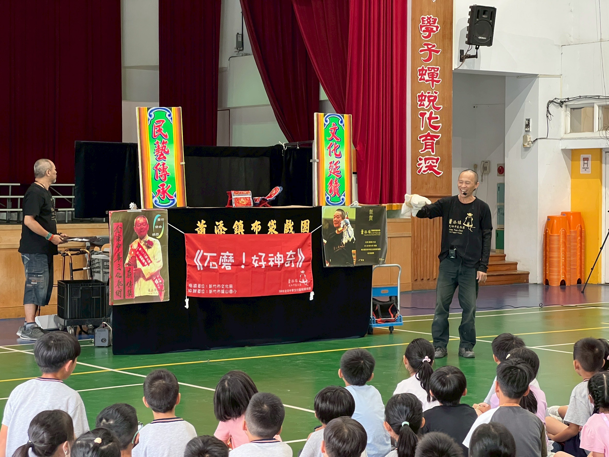 特別邀請「蕭添鎮民俗布袋戲團」到校演出精彩布袋戲《石磨好神奇!》,透過生動有趣的表演,向二三年級學生進行品德教育的宣導。演出內容強調兄弟情誼與友愛精神,同時展現台灣民俗技藝的精湛魅力。