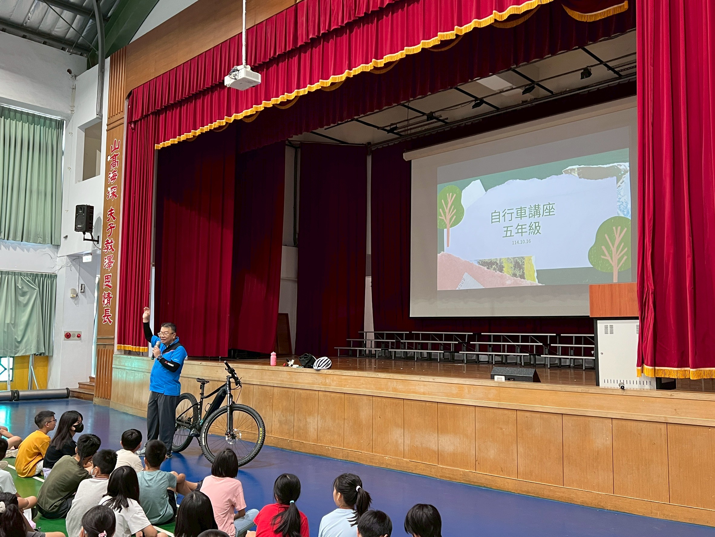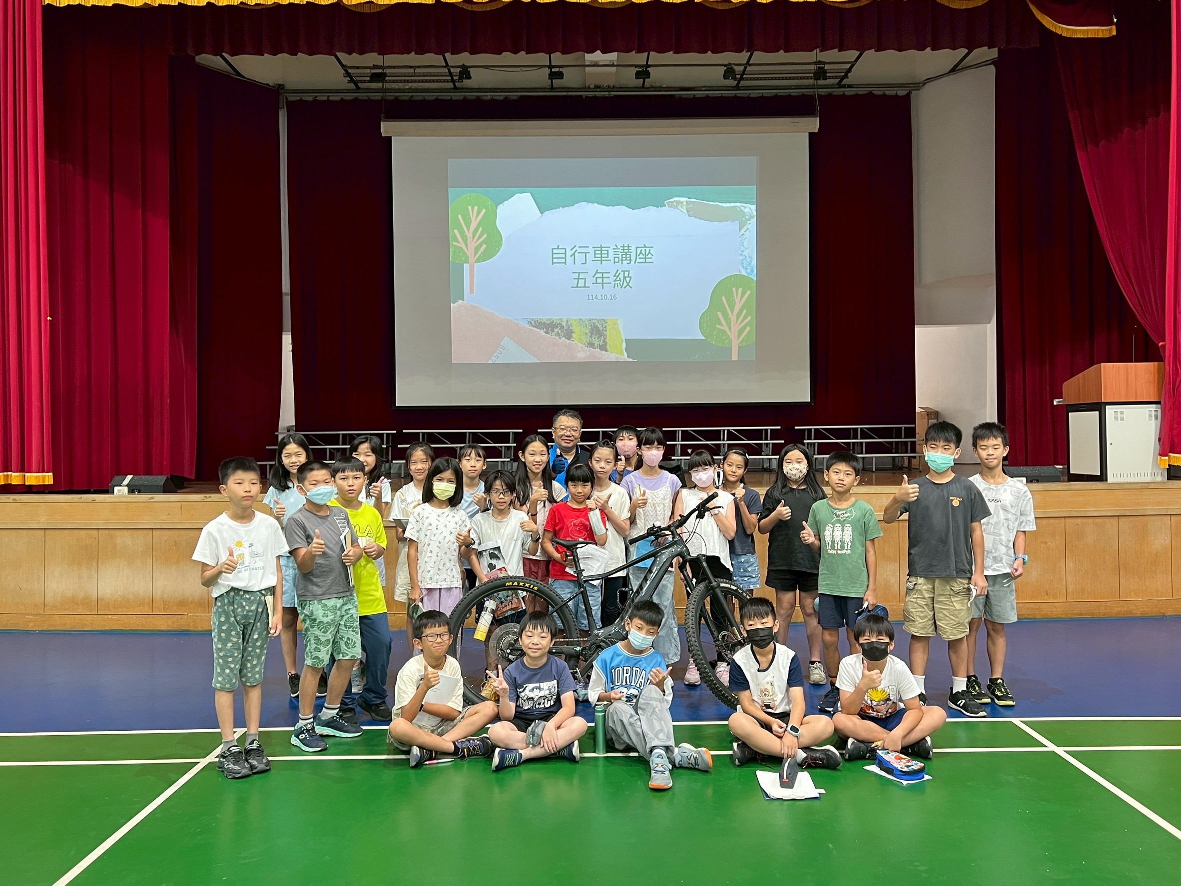 很榮幸邀請到「竹北阿診自行車店」的張老師,為五年級學生帶來一場精彩的「自行車安全講座」。張老師以生動的講解介紹自行車的結構與安全性能,提醒同學們安全帽能保護頭部、車燈具有警示作用,並特別強調貨架不能載人及應行駛於自行車通道的重要性。