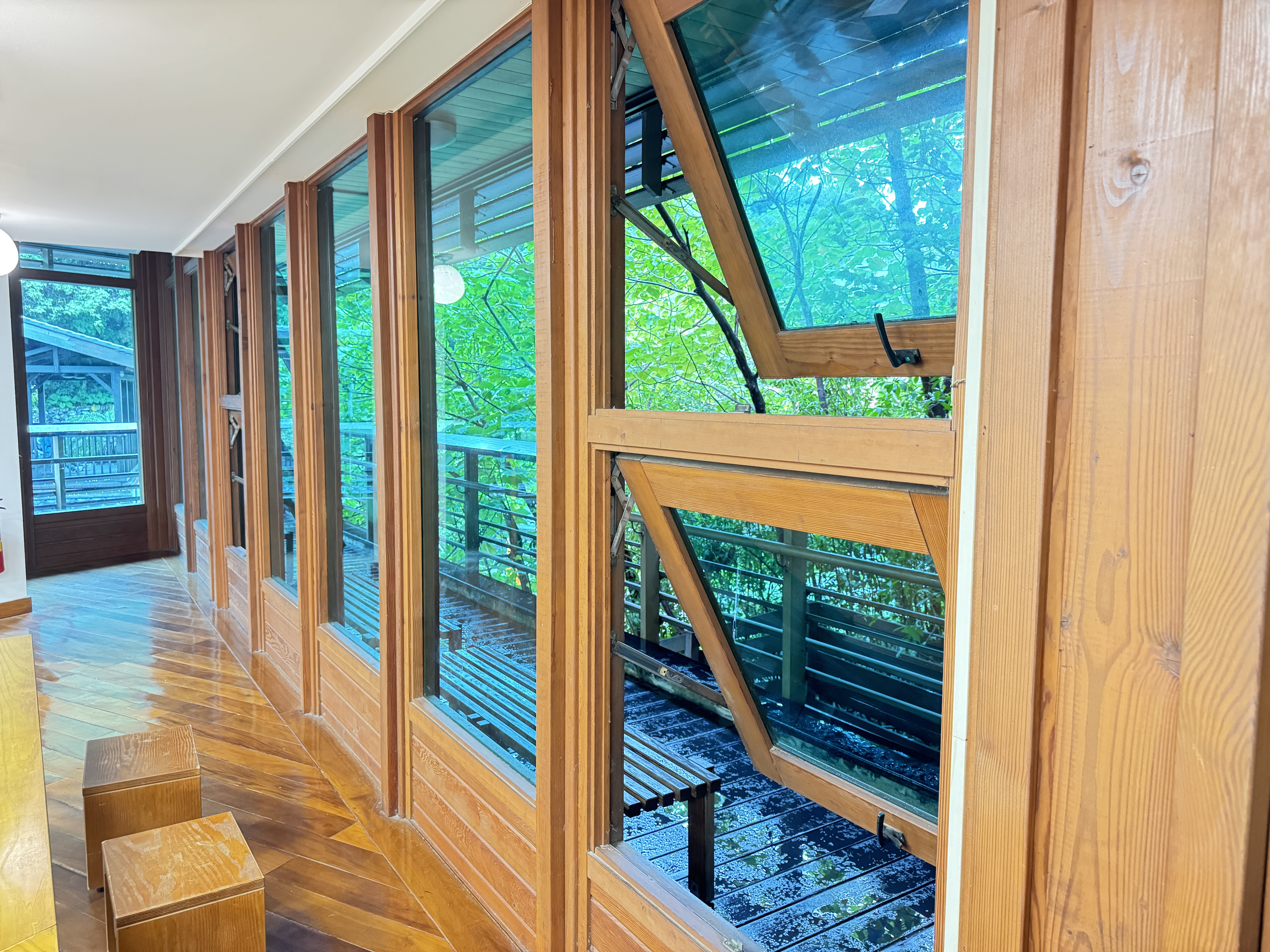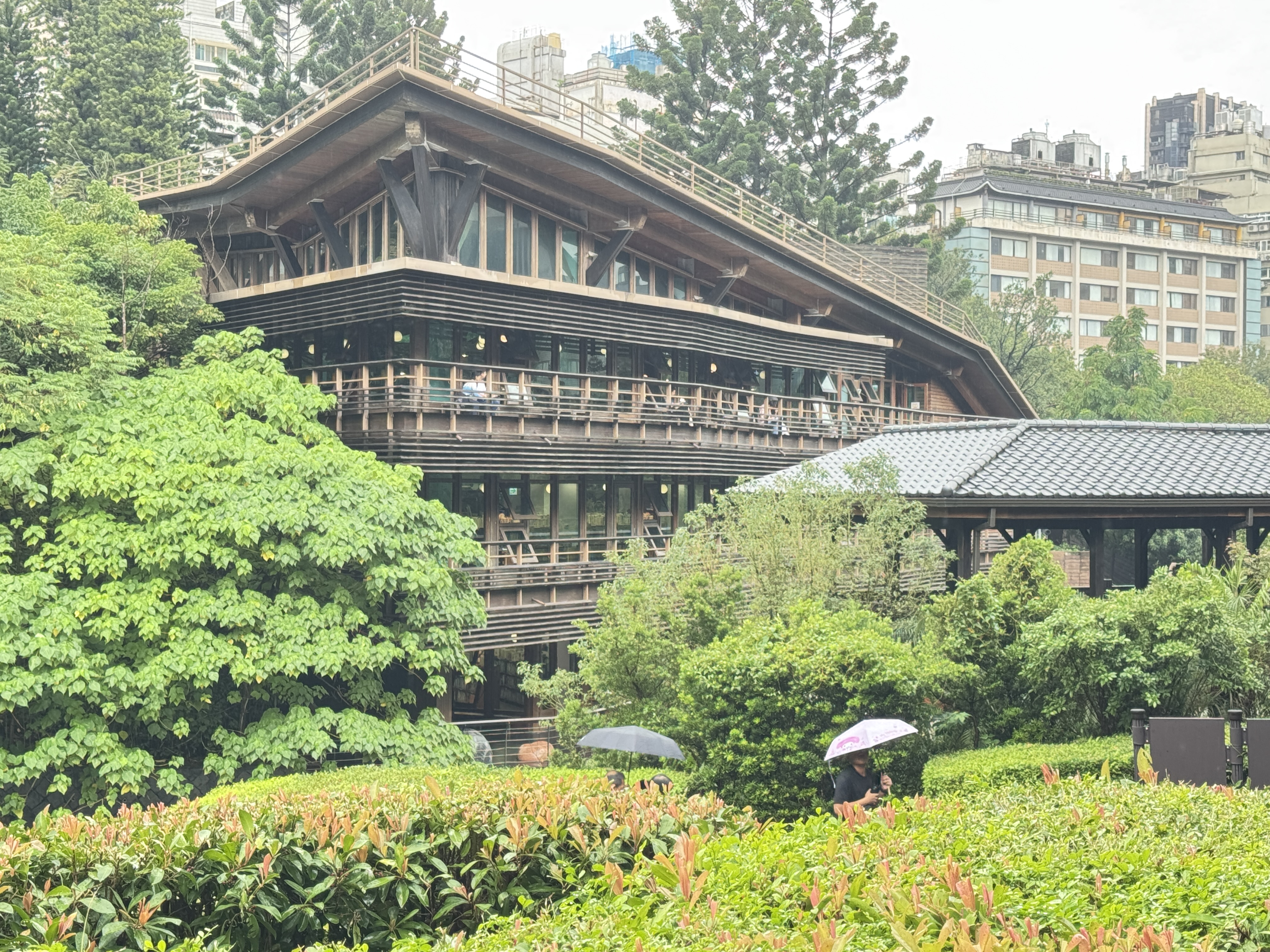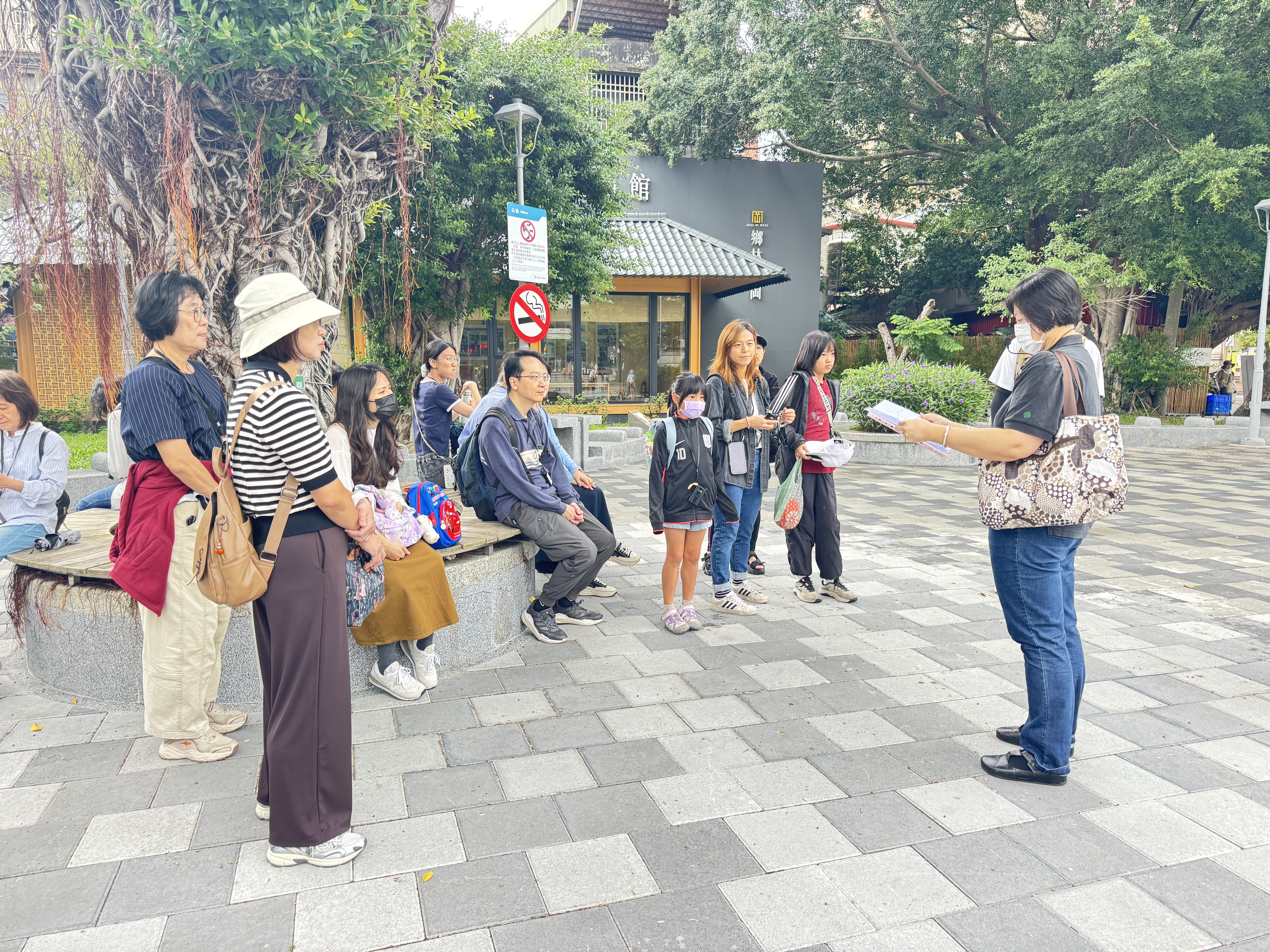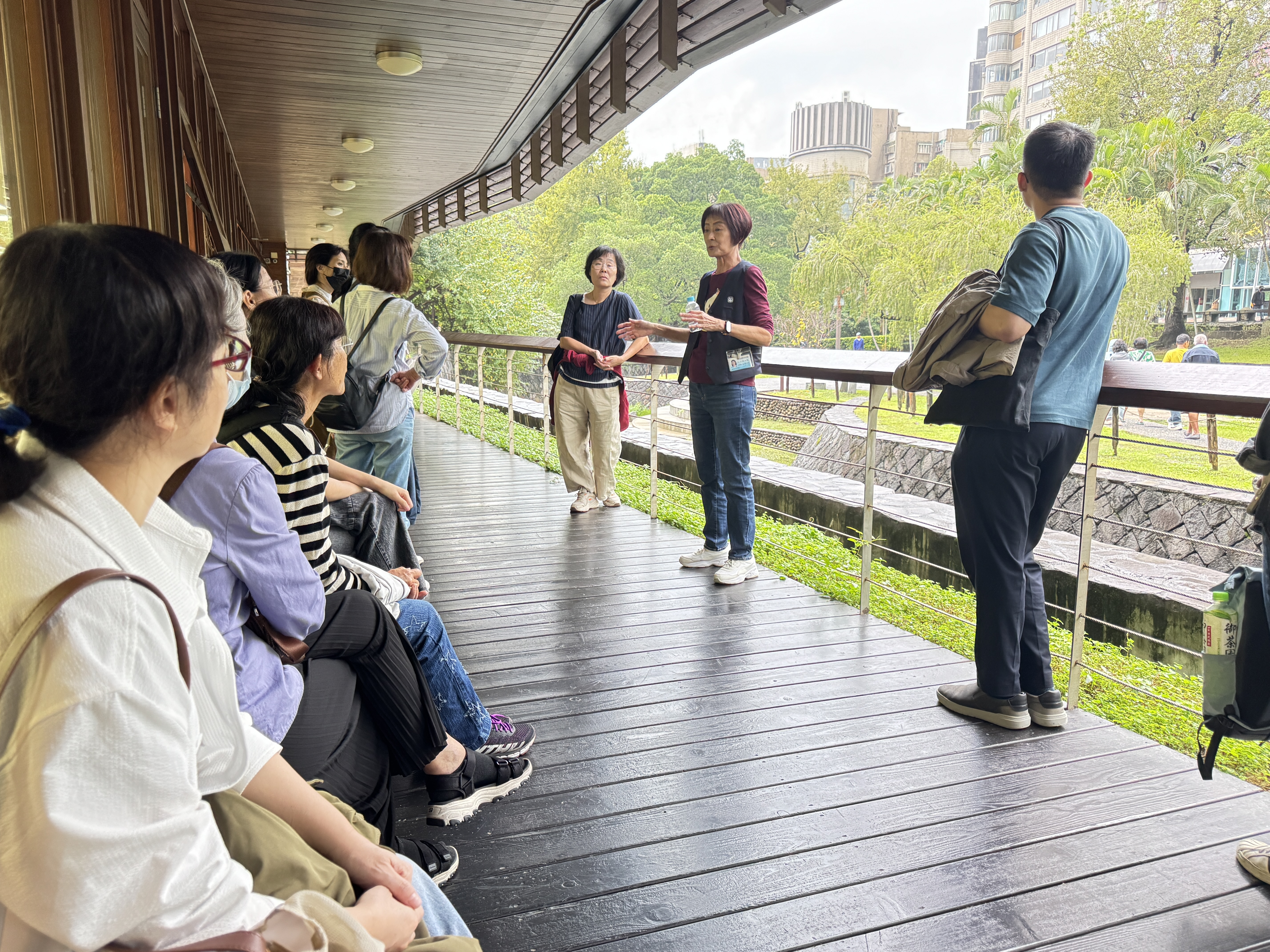 在周氏節孝坊與陳氏祠堂,教師們透過導覽解說,了解清代北投地區的家族制度與忠孝文化,並思考這些歷史建築如何見證地方的社會變遷與價值觀演化。中正街與北投市場則呈現出北投生活的日常風貌,從街屋格局到市場攤位,皆蘊含豐富的地方記憶與庶民文化。 新北投車站的復舊重建更是本次走讀的亮點之一。教師們實地觀察車站的木構造與日治時期風格,並討論文化資產保存與活化利用的可能性。走讀尾聲,大家來到北投圖書館,由館方人員進行建築導覽,介紹其融合環境永續與現代設計的特色。圖書館以竹材與玻璃打造通透空間,並巧妙融入地形與綠意,成為台灣首座綠建築圖書館的典範。