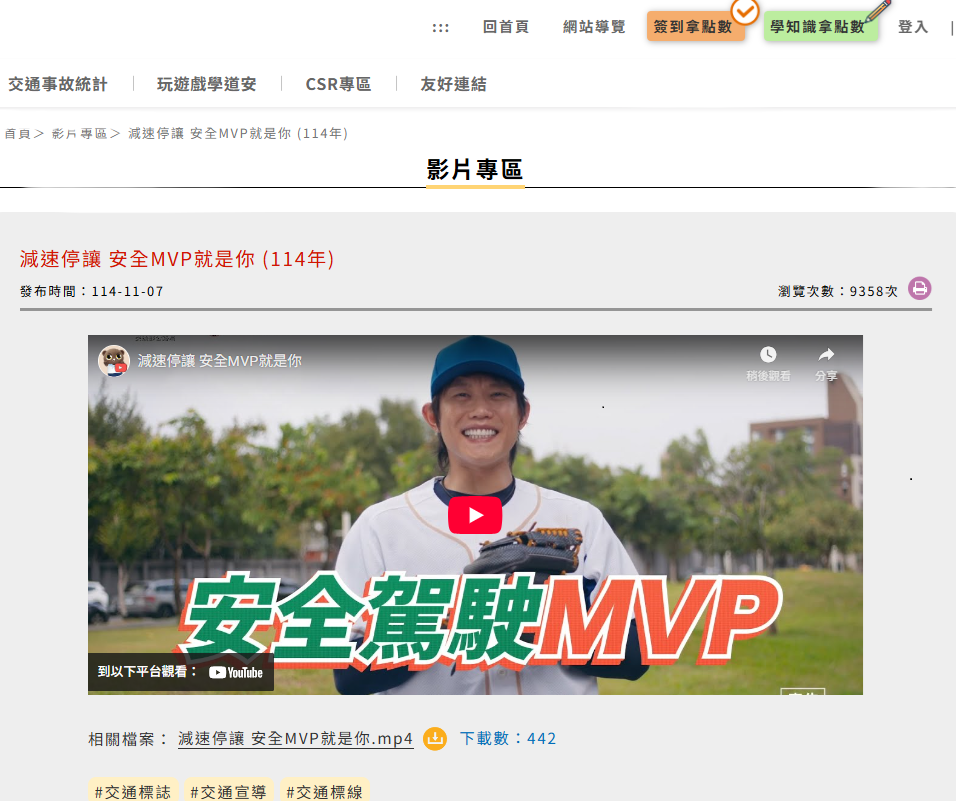 (1)「減速停讓,安全MVP就是你 」:https://168.motc.gov.tw/theme/video/post/2511071210803