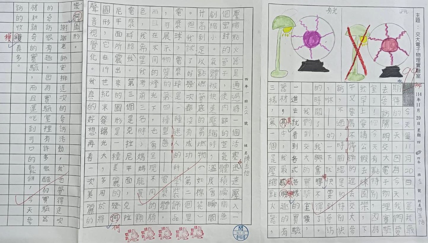 除了在教室中的科普活動,龍山國小四年級學生今日也走出校園,前往交通大學「趣味物理實驗室」進行參訪。孩子們在多樣化的物理小遊戲與展示設備中親身體驗科學的魅力,不論是力與運動、光與影,或是磁與電,皆讓同學們直呼新奇有趣。