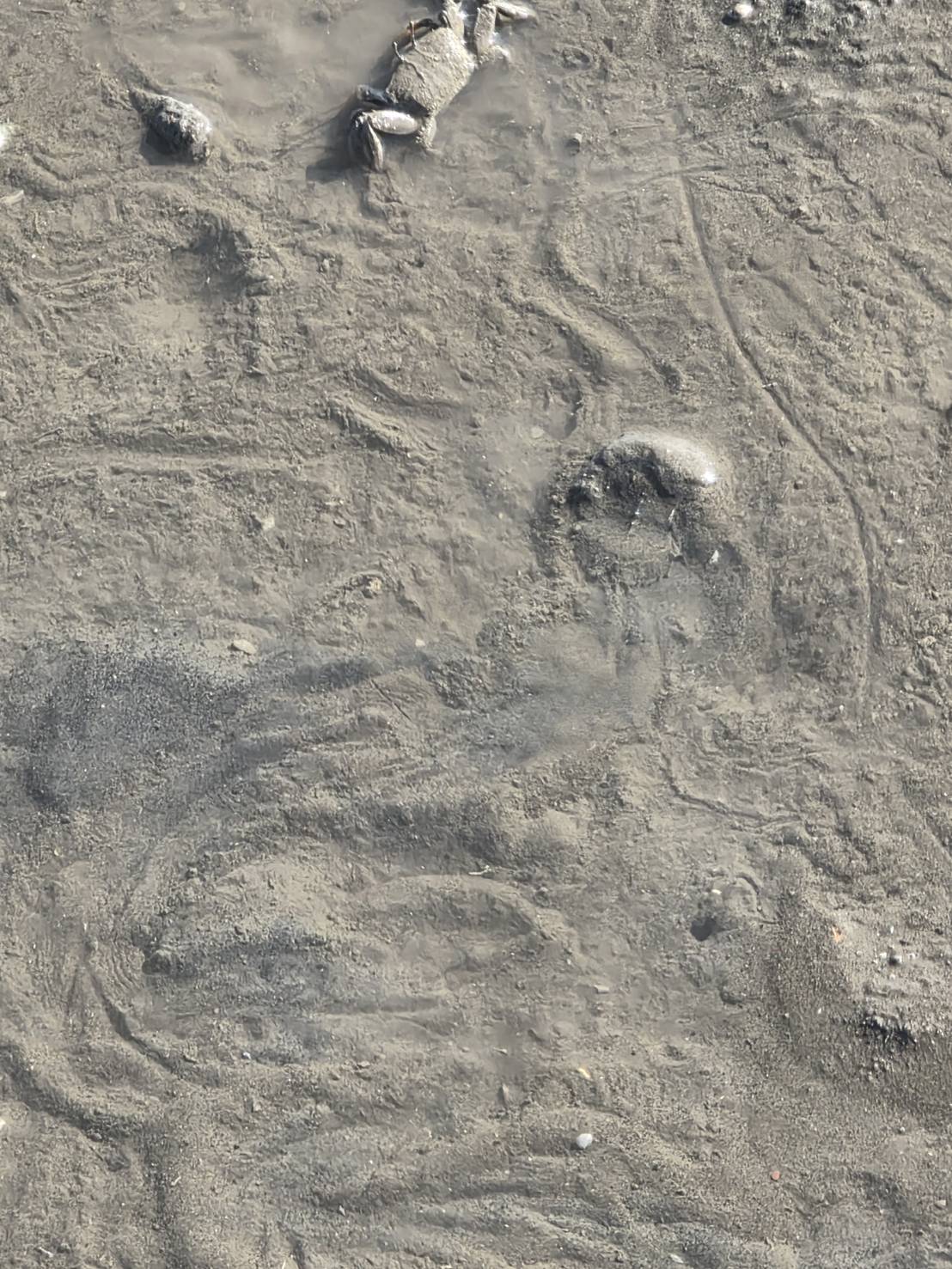 在本月20日,孩子們受香山濕地海洋保育中心的邀請,前往「鱟」的棲息地,像是小小探險家,帶著滿滿的求知慾,勇敢開啟第3道關卡,透過保育員宇涵姊姊的細心解說,香山濕地屬於海岸濕地,受到海水漲退潮的影響,一般的生物難以適應,必須是能耐高溫,廣鹽度具耐旱性,再加上還需要忍耐浪的衝擊及海水的混濁度等能力的生物,方能在當地的環境下生存。也了解在香山濕地賞蟹步道行進間,要遵守兩大原則:不奔跑,安靜觀察,407的孩子們,為了一睹他們朝思暮想的寶貝,都在賞蟹步道趴地求「鱟」,努力尋找小鱟的「川字路徑」,只求一面「鱟」顏。