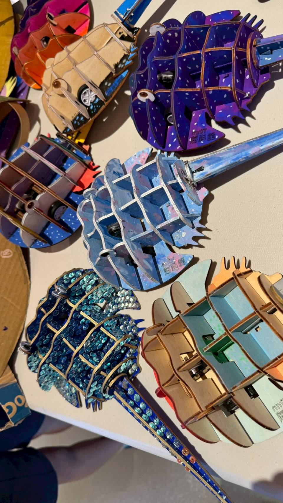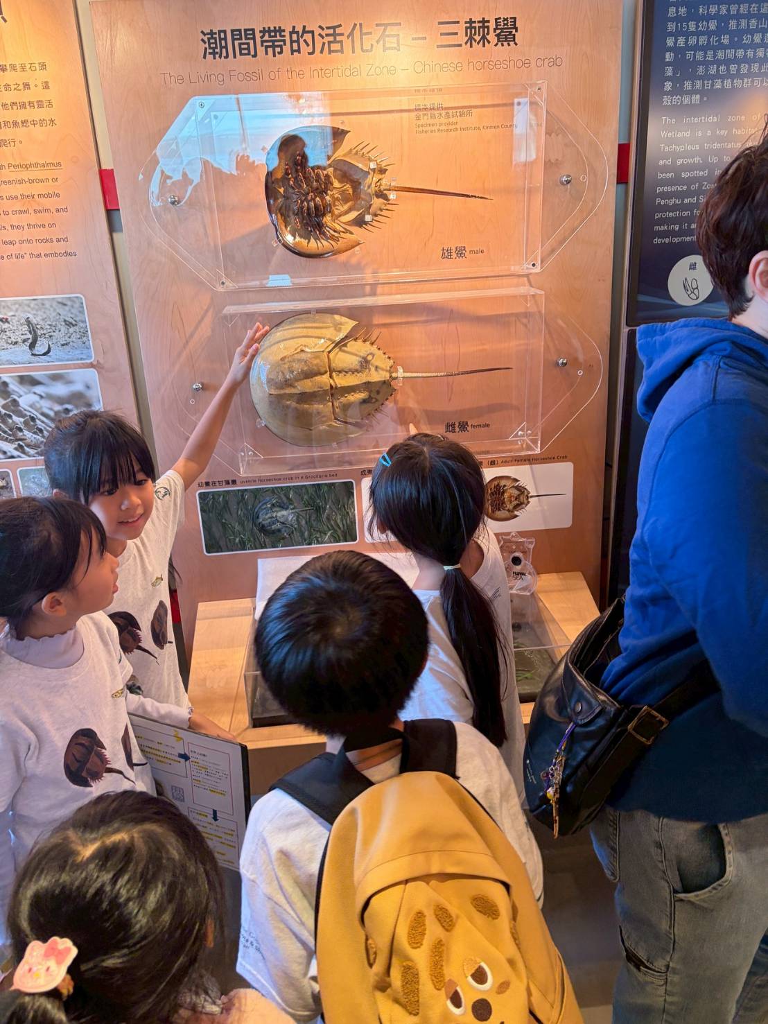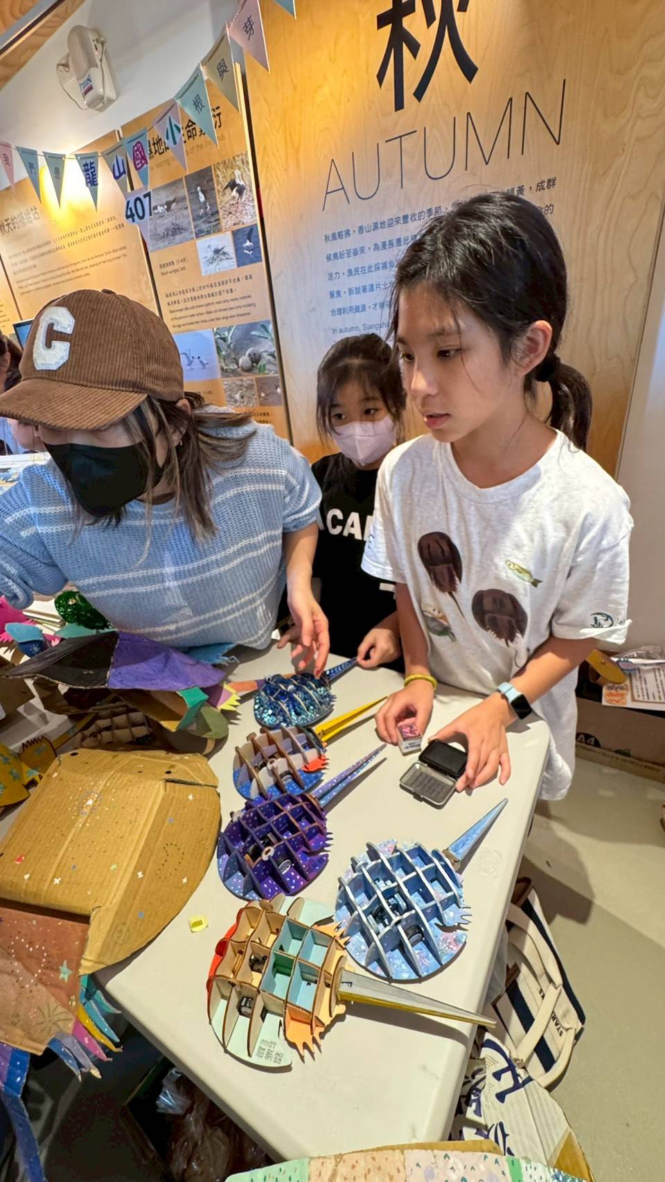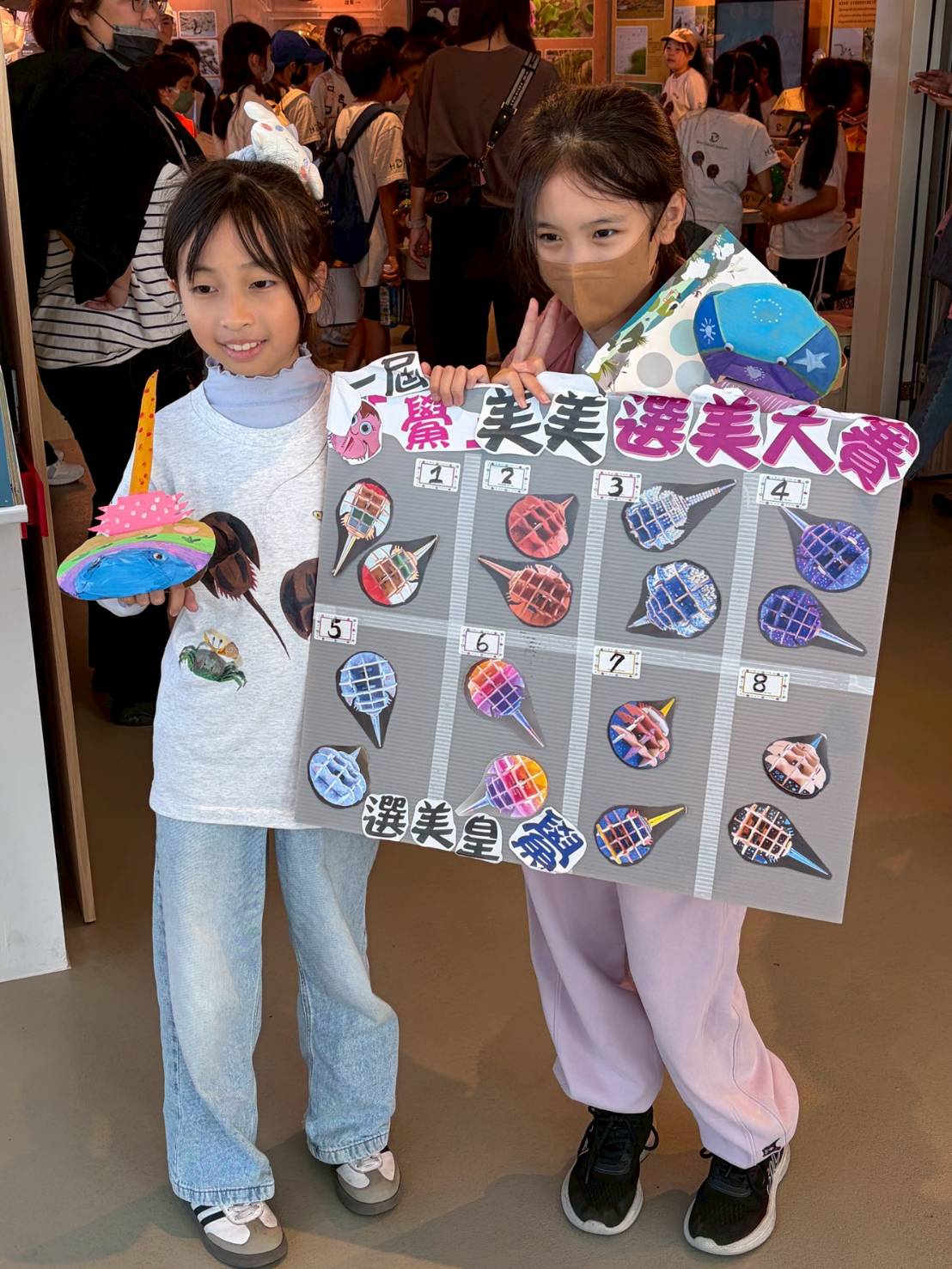 407 班的學生利用廢棄紙箱與紙板,設計出獨一無二的「鱟」造型,將對三棘鱟的喜愛化為創意與行動。透過「選美皇鱟」、「鱟之迷宮」、「鱟的餐廳」等趣味互動關卡,孩子們不僅大方分享所學,也讓參與者深刻感受到海洋保育的重要性。