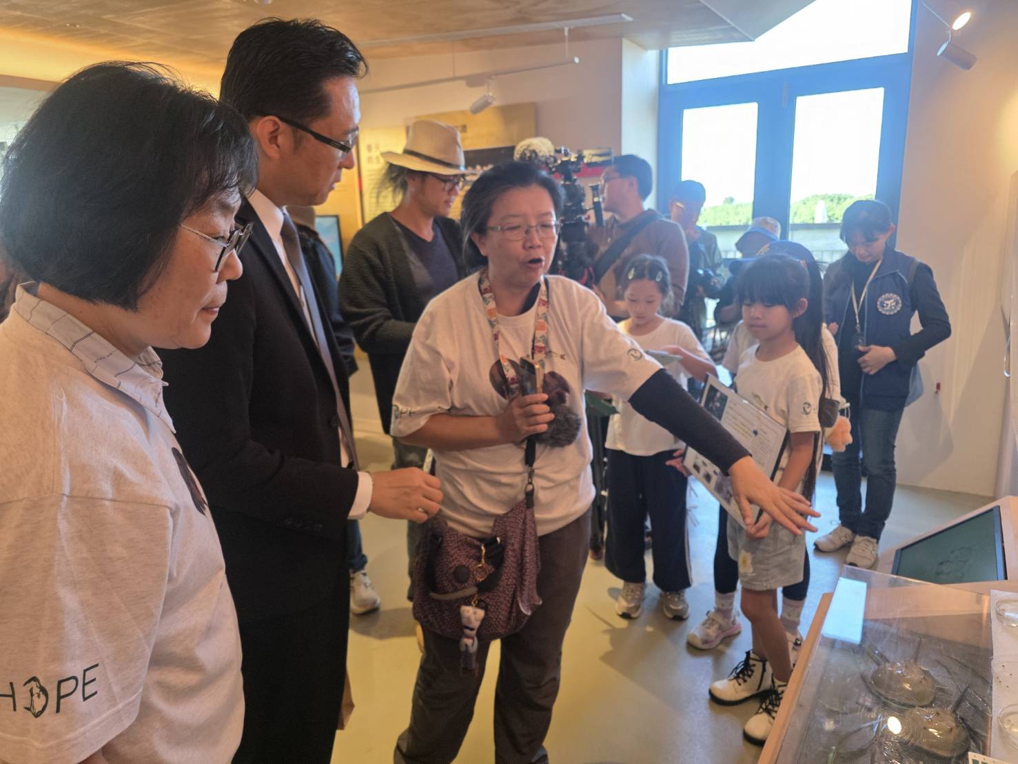 今年活動更特別的是,龍山國小第二次參與海洋科技博物館的「2025鱟知鱟學公民科學家計畫」,將校內認養的「鱟寶寶」一同帶到現場,孩子們藉由擔任科學家的研究歷程-每周餵養、監測水溫、水質等,分享培育鱟的經驗與心情,讓嘉年華增添更多生命力與驚喜。海保署王永昌主任秘書、臺灣首位鱟博士楊銘哲博士及珍古德郭雪真執行長也親臨展場,對孩子們的精采表現給予高度肯定。龍山國小師長及家長們的用心付出,讓孩子們在活動中真正做到「學以致用」,也明白自己擁有改變世界的力量。