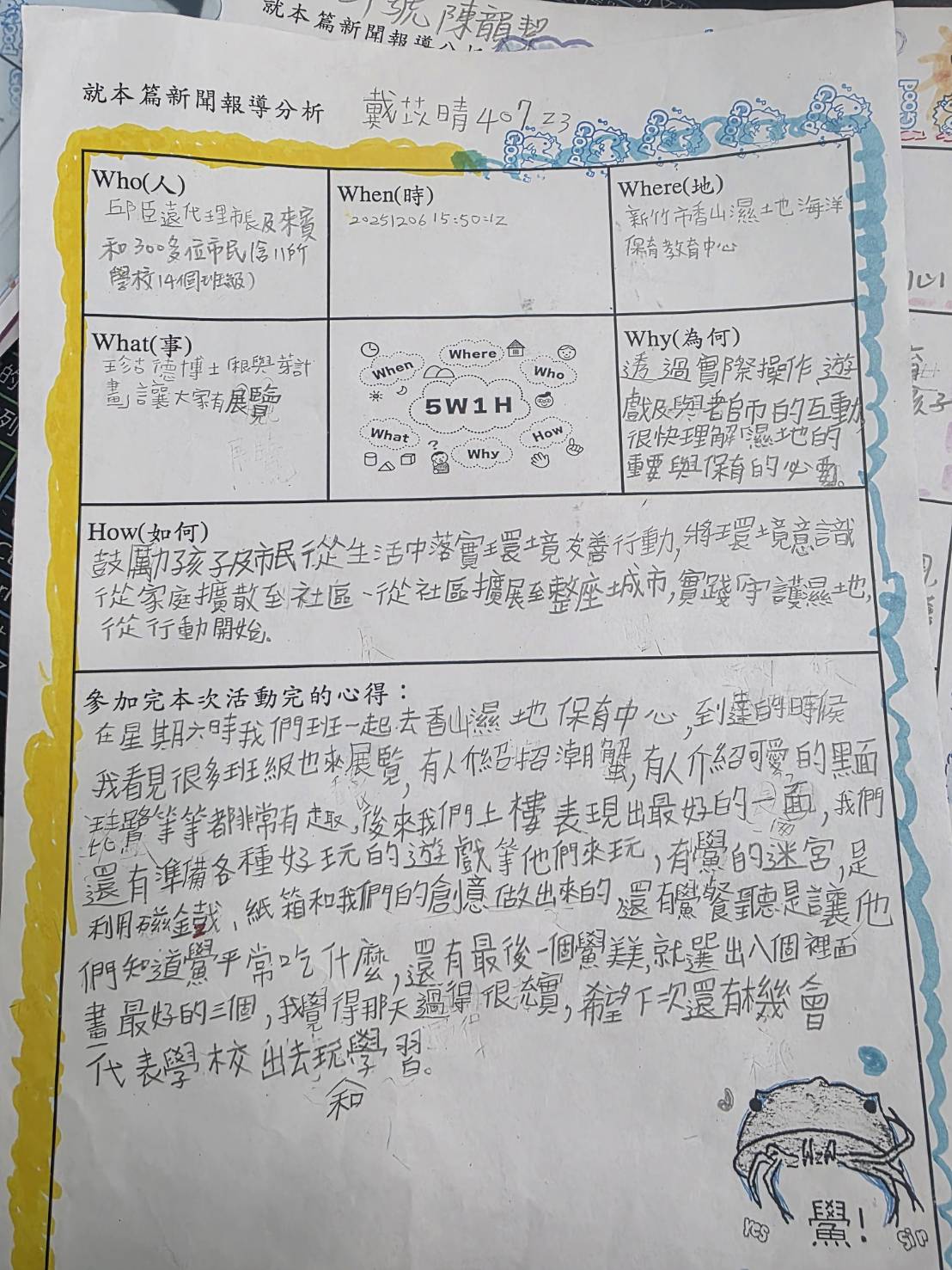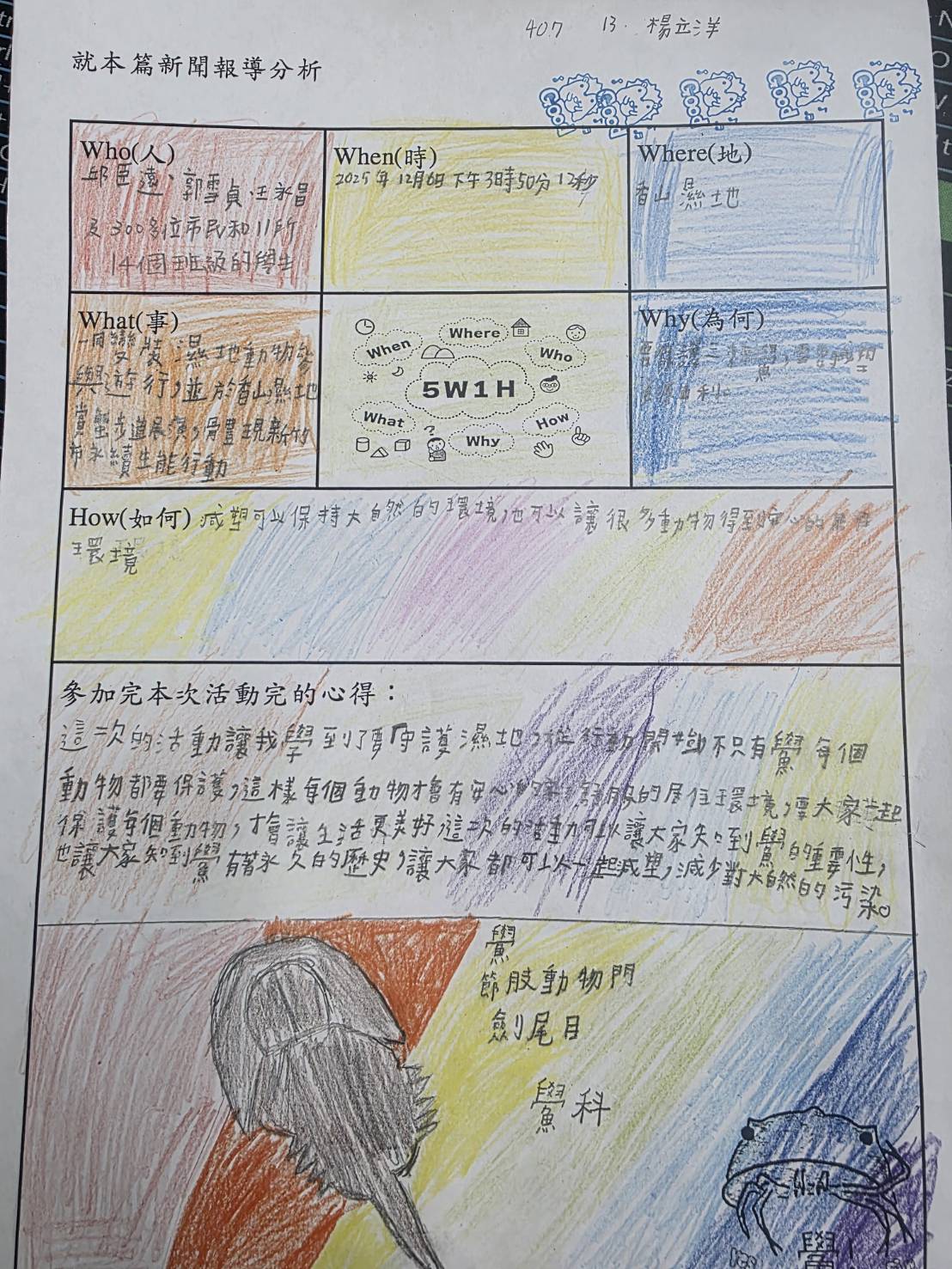 12 月 6 日的根與芽嘉年華,不只是一次知識的展示,更是孩子們以行動深入認識海洋生物「活化石—鱟」的探索旅程。活動培養了班級溝通、提問、發表與團隊合作能力,跨領域的學習方式讓知識跳脫課本,走入生活,也激發了孩子們的好奇心與社會責任感。