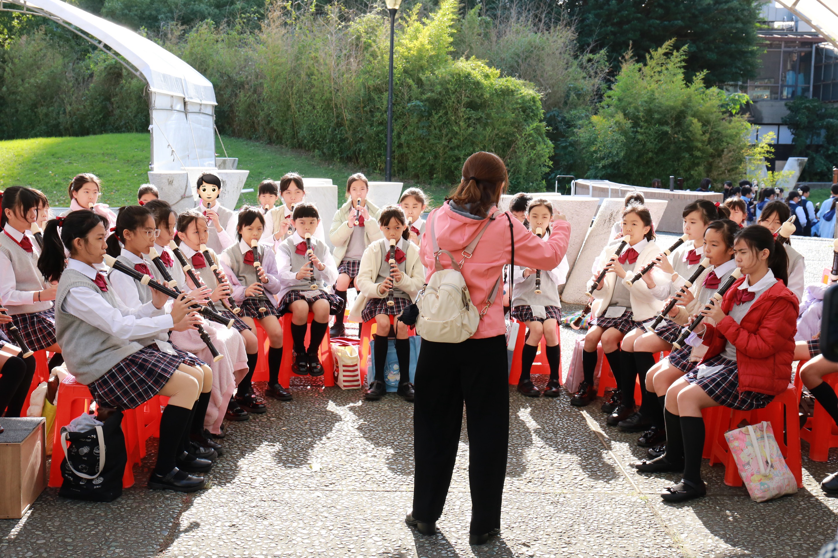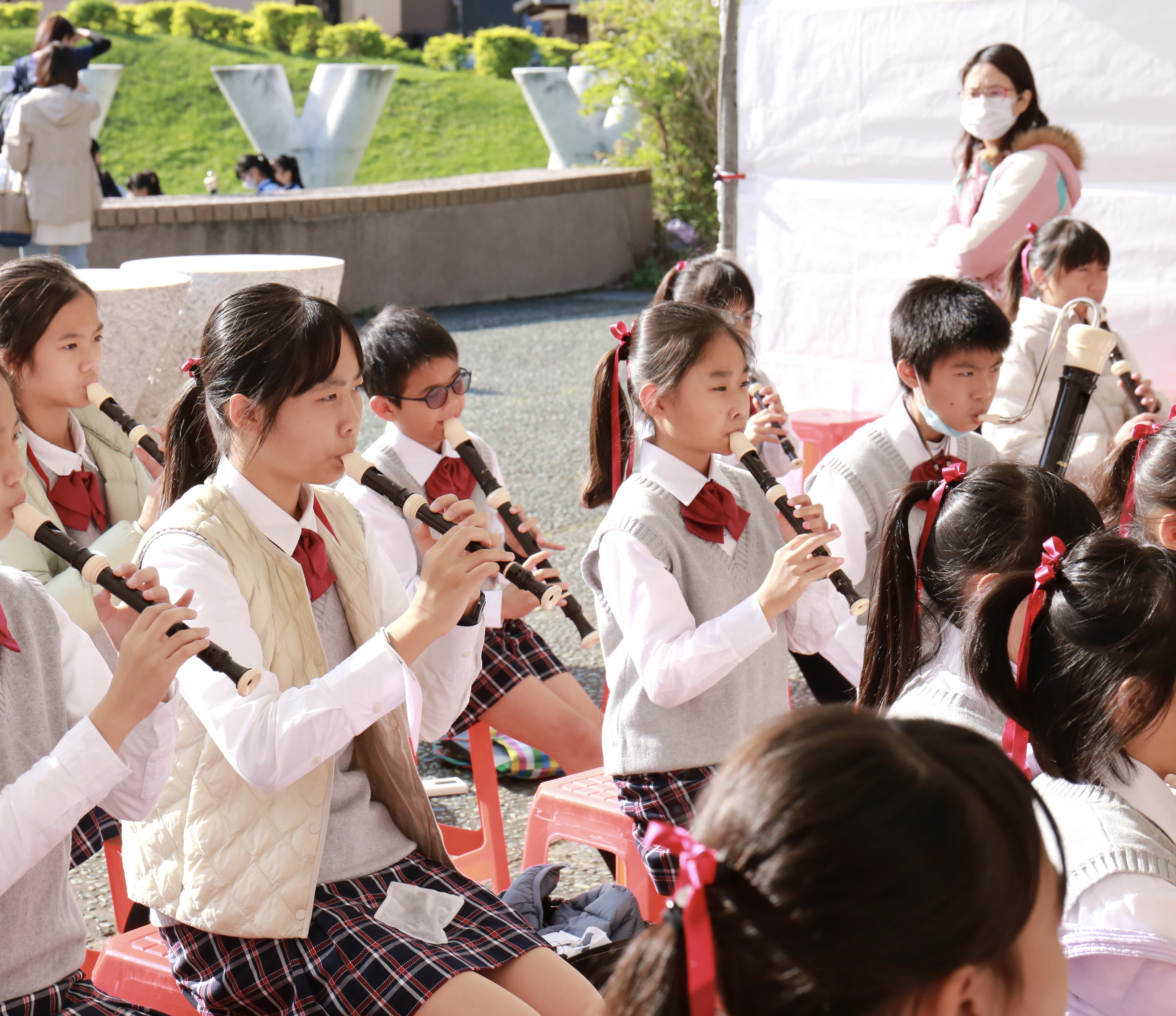 比賽當天的清晨略帶冷意,直笛團的孩子們一早便在校園禮堂集合暖身,團員們相互幫忙繫上領結,盡心的家長志工親手為孩子們編製手作髮飾,師生與志工家長們齊心準備,展開屬於音樂的精彩旅程。