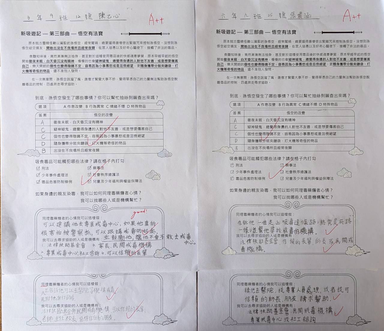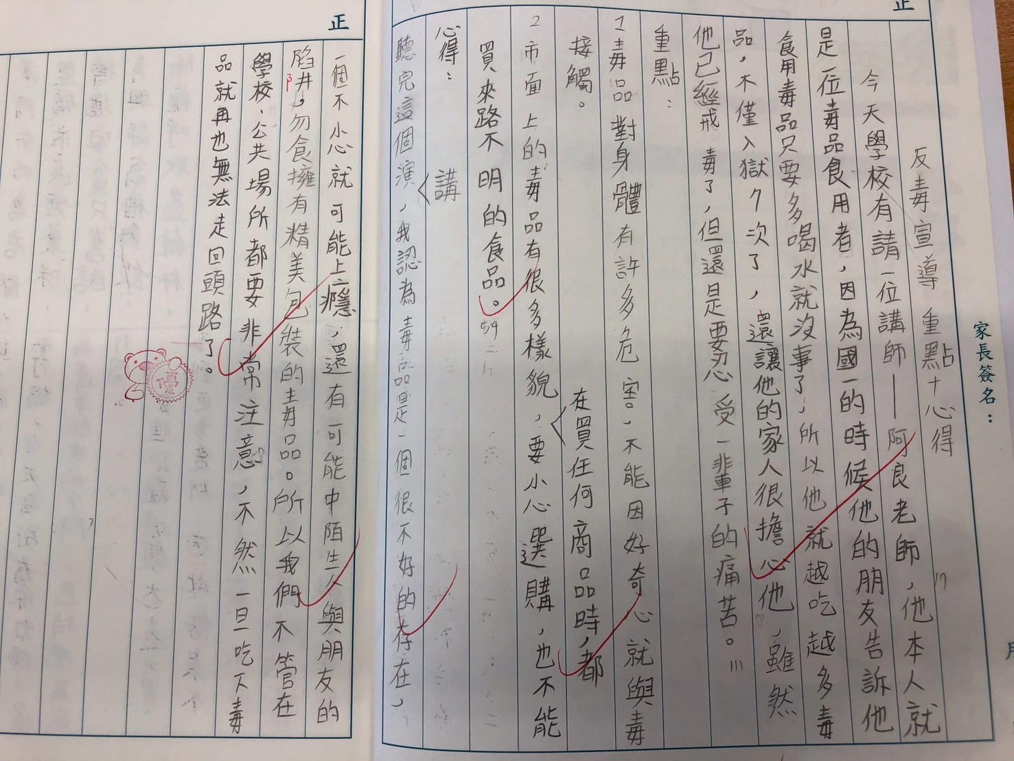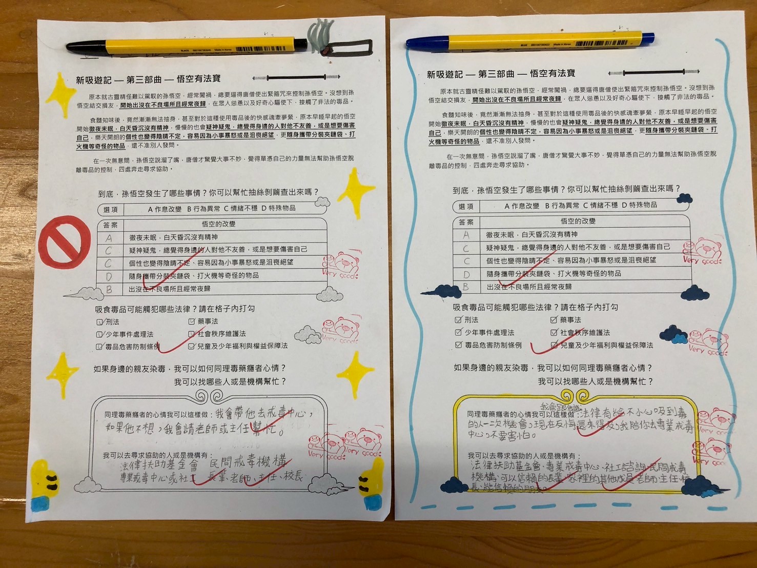 除了邀請講者到校分享自己的親身經歷與毒品的危害,之後在班級使用