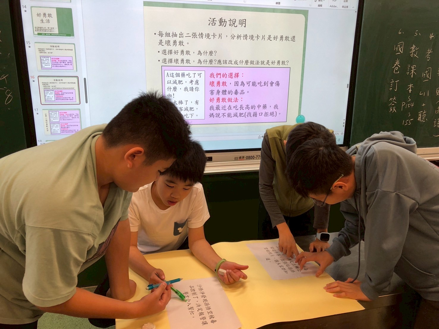透過故事情節「新吸遊記」,班上分組進行動態活動與靜態討論並發表,