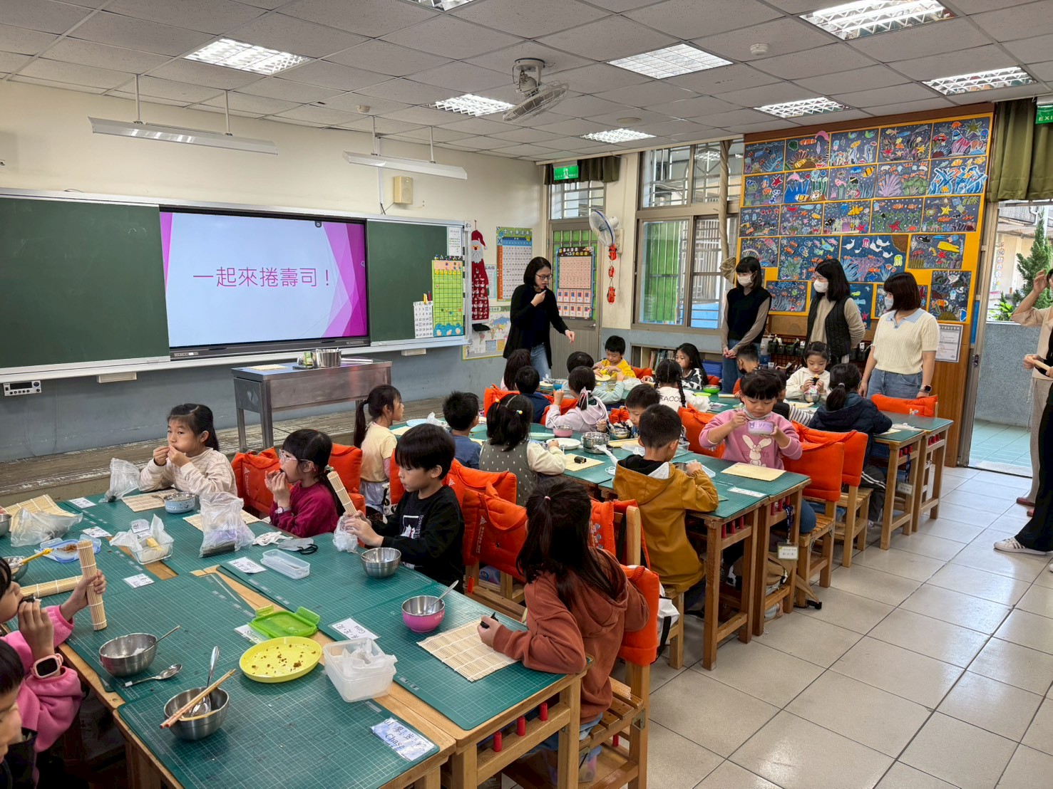 邀請爸爸媽媽一起來學校製作捲壽司,
